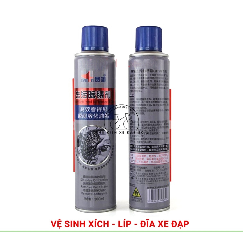 Bình xịt vệ sinh CYLION 300ml giúp vệ sinh sên líp, loại bỏ dầu nhớt cũ, bùn đất, an toàn dễ dàng sử dụng giúp bạn có thể tự chăm sóc cho chiếc xe của mình làm giảm rủi ro gỉ sét hay nguy cơ làm hỏng các bộ phận bằng nhựa. Sau khi sử dụng sẽ đem lại 1 bề mặt sạch sẽ và sáng bóng.