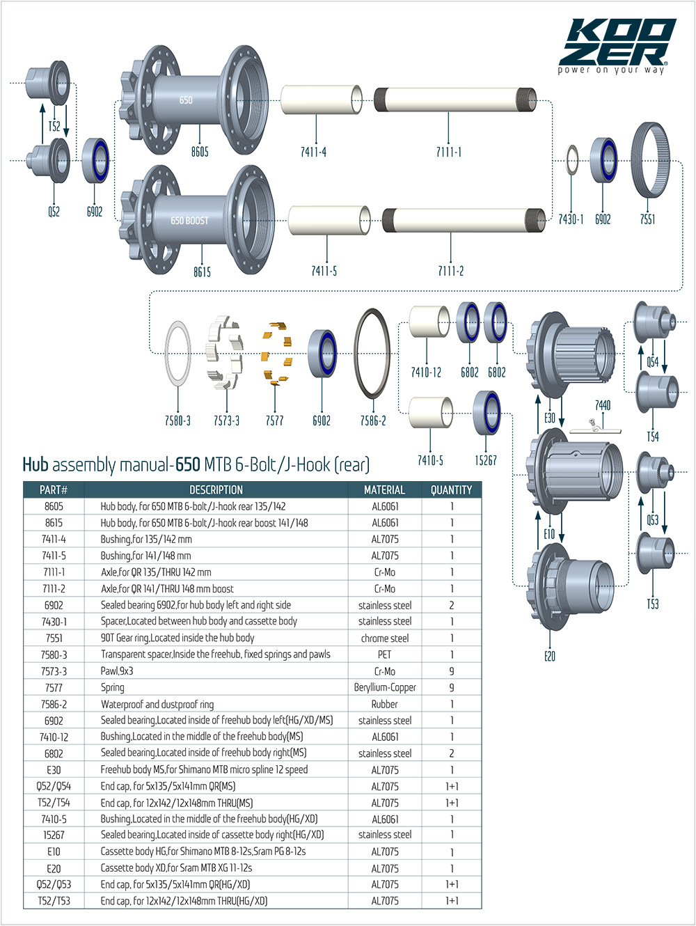 Vòng bi kín: phía sau 4 chiếc (HG/XD: 6902*3 + 6802*1 + 15267*1) / 5 chiếc (MS: 6902*2 + 6802*2), phía trước 2 vòng 18307