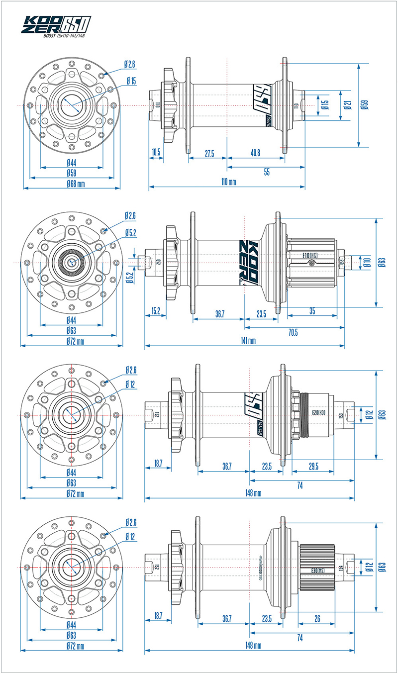 Hệ thống trục: Phía trước 110*15mm, phía sau 148*12mmm