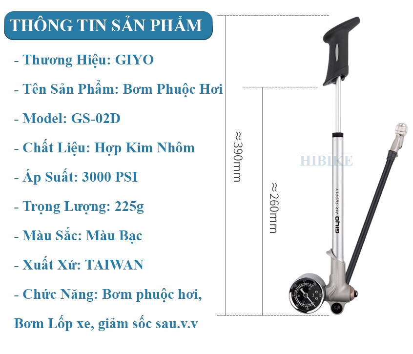 GIYO GS-02D là một trong những sản phẩm bơm phuộc hơi được ưa chuộng trên thị trường hiện nay. Với thiết kế nhỏ gọn, chất liệu hợp kim nhôm cao cấp và áp suất tối đa lên đến 3000 PSI, sản phẩm này đáp ứng được hầu hết các nhu cầu của người dùng.