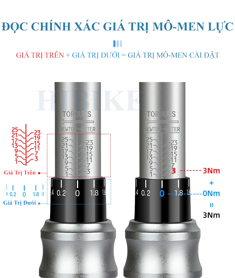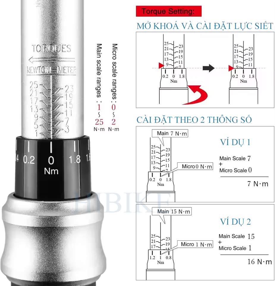 Cờ lê có dải lực siết từ 1-25 Nm, phù hợp với hầu hết các ốc vít trên xe đạp, từ ghi đông, pô tăng, cọc yên đến các chi tiết quan trọng khác. Thiết kế "Torque Wrench 2.0" giúp bạn dễ dàng cài đặt lực siết mong muốn với độ chính xác cao.