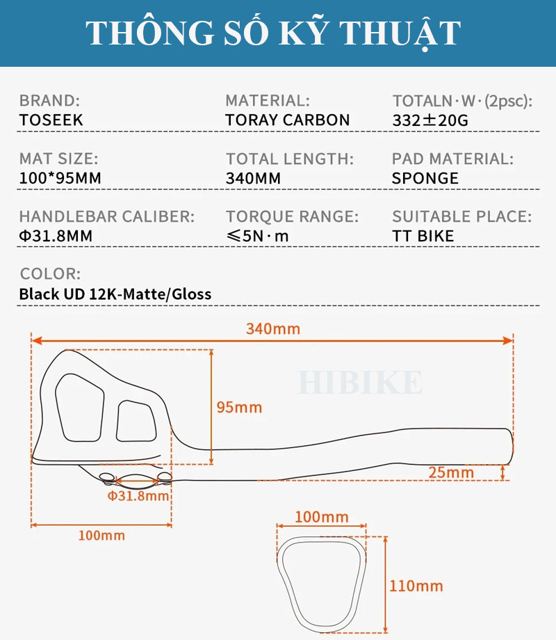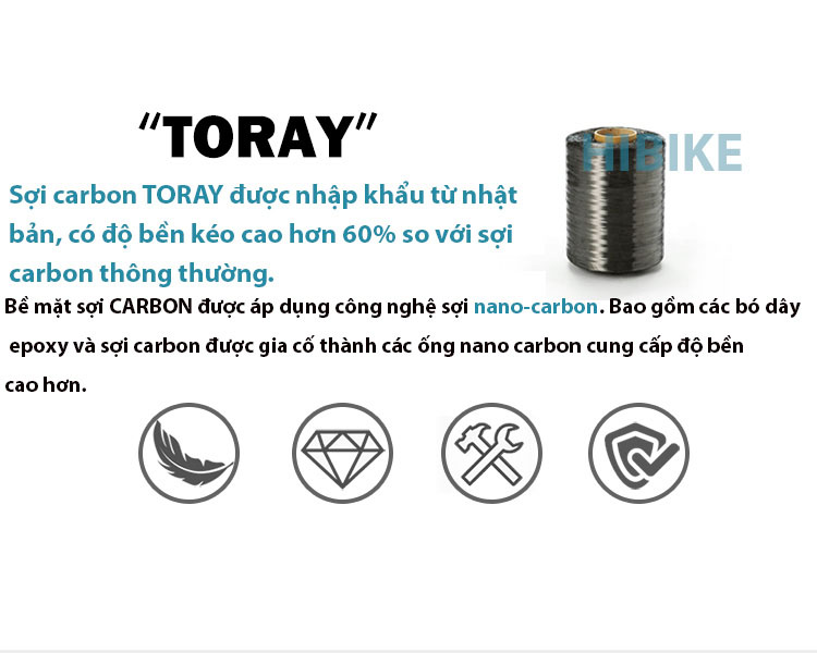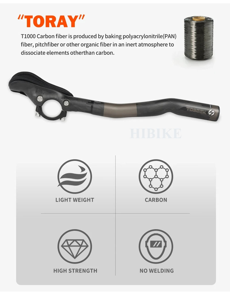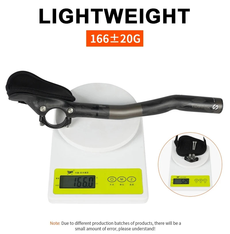 Tay càng nghỉ gắn ghi đông xe đạp chống mỏi Carbon TOSEEK được sản xuất bằng sợi carbon Toray T800 siêu nhẹ .Trọng lượng khoảng 332g giúp tối ưu khối lượng tổng thể chiếc xe nhưng không kém độ cứng cáp và chắc chắn.